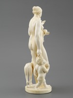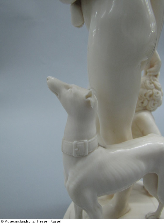 Elfenbein, gesägt, gebohrt geschnitzt und poliert, der Hund ist separat gefertigt und eingesteckt. |